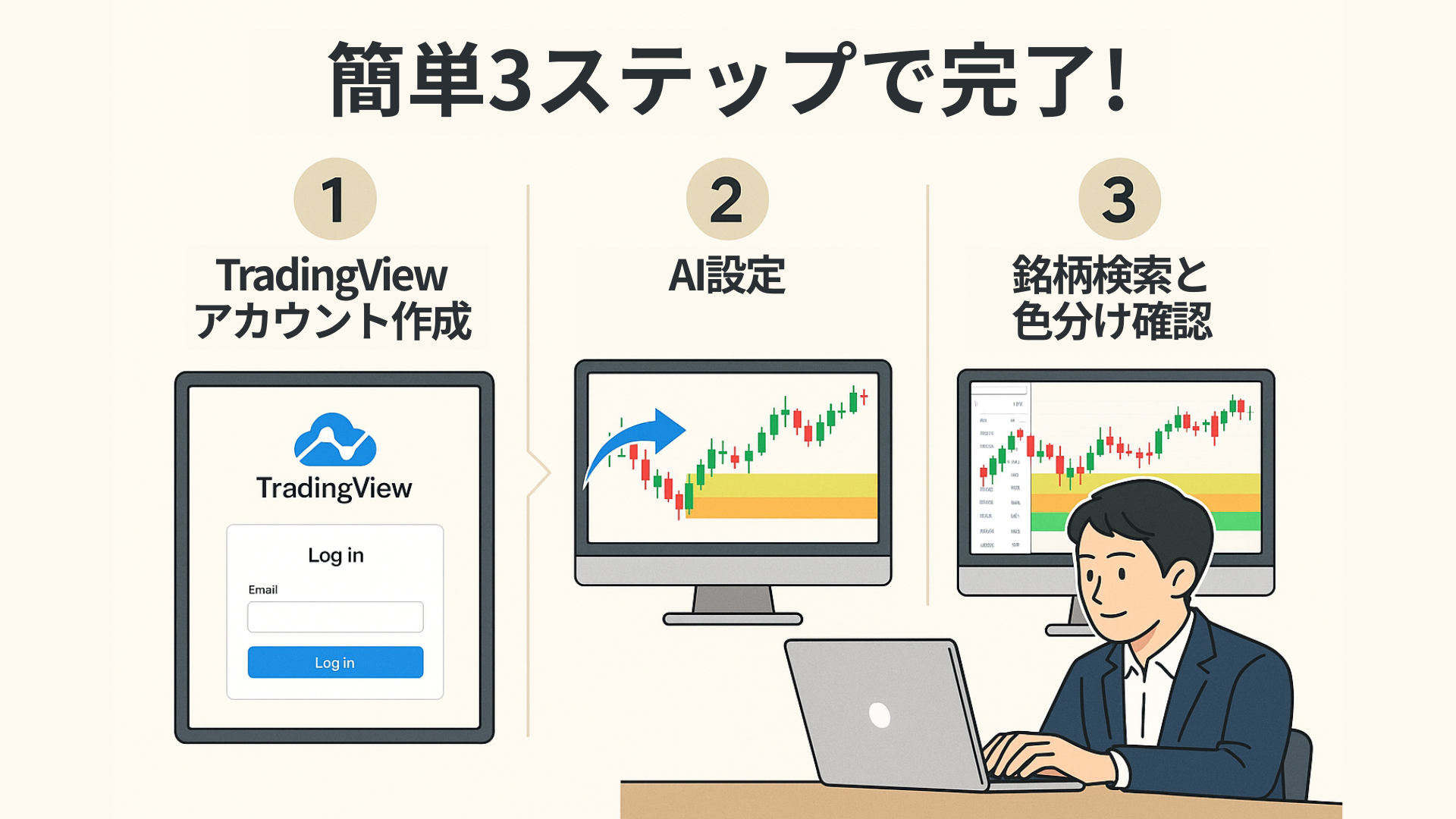もう、毎日何時間もかけて、無数のチャートとにらめっこする必要はありません。このツールを使えば、ウォッチリストに入れた銘柄のトレンド状況を、わずか数分でチェックできます。